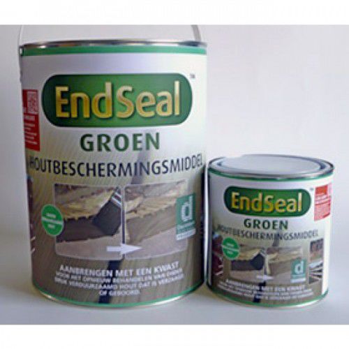 U heeft keuze uit groen (voor groen verduurzaamd hout) of bruin (voor bruin verduurzaamd hout). EndSeal™ is verkrijgbaar in blikken van 750ml